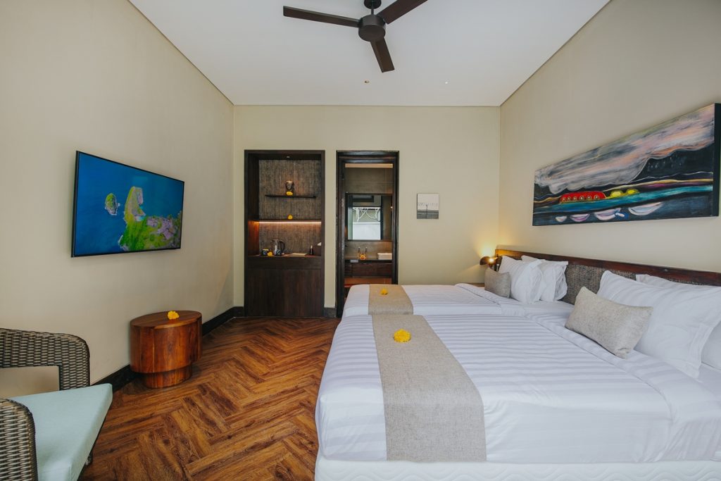 • Air-conditioned bedrooms with king-size bed, available option twin beds in one bedroom.